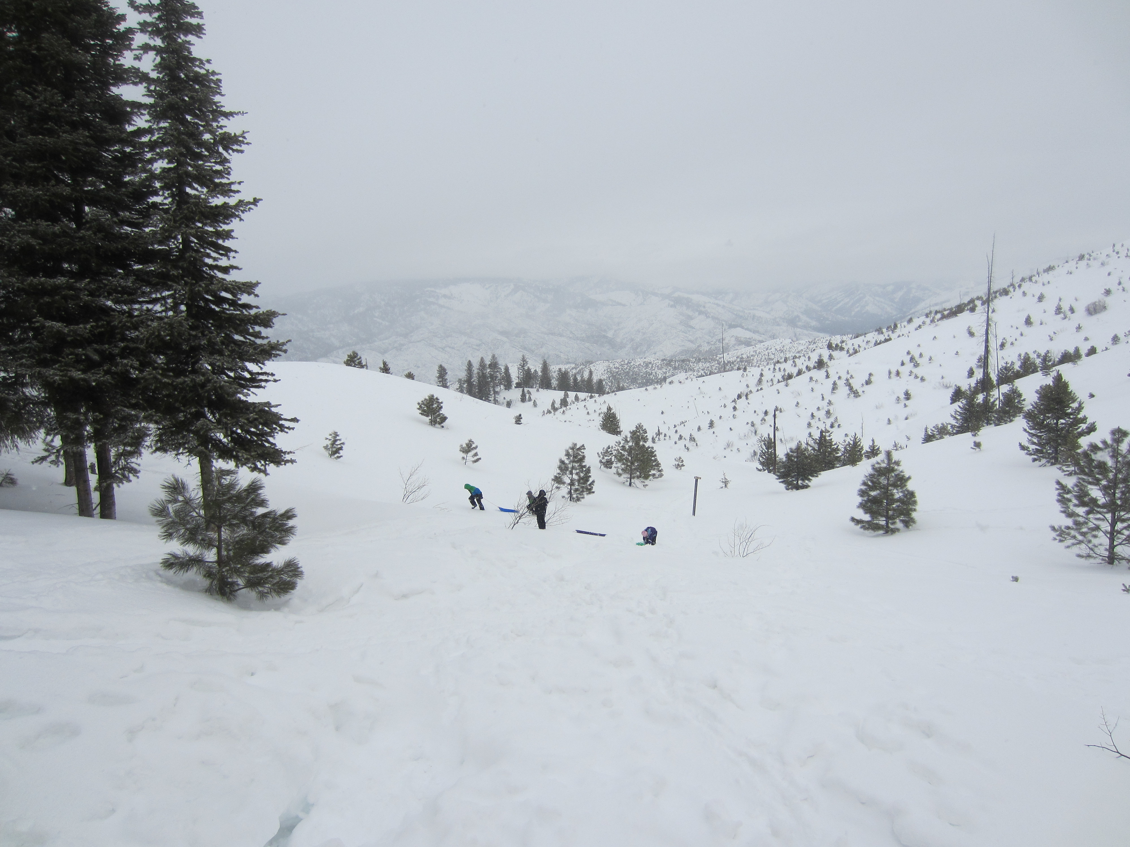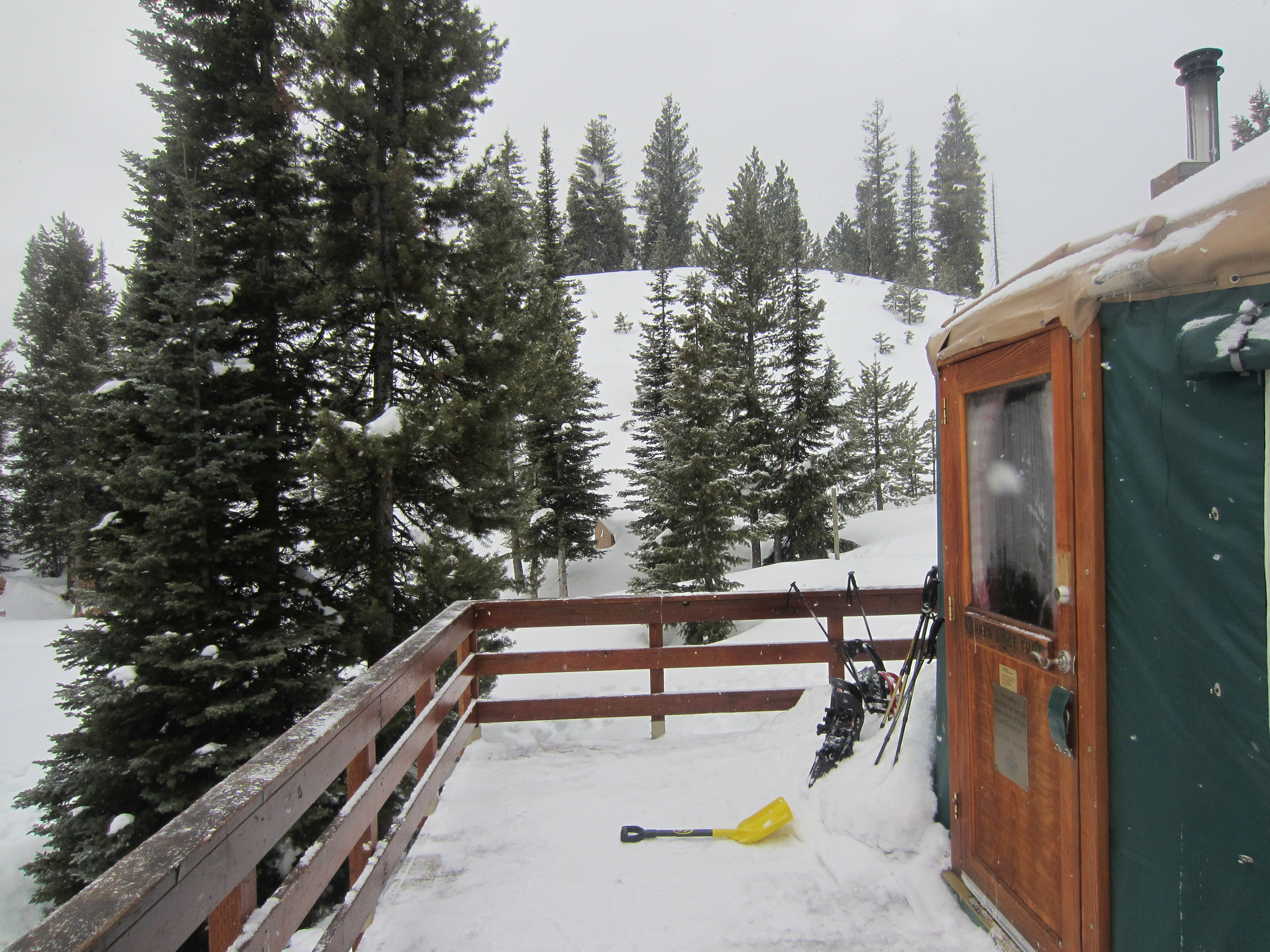 Our good friends, reserved the Banner Ridge yurt on February 17 and 18 and invited us to come along. Two of my children and I accompanied my friend and his 4 kids for our first-ever stay in a yurt. The yurt is located just off a high ridge in a protected north-facing bowl. Looking north and down over 3000 feet in elevation you can see the South Fork of the Payette River, Bear Valley, and Scott Mountain. At 6500 feet (at the summit on the way there), the view of the Sawtooth Mountains is great.
